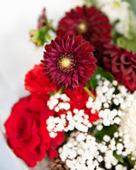 This luxury bouquet is a rich mix of vibrant reds, crisp whites, and fresh greenery that captures the warmth and magic of Christmas.