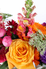 Please Note: Photos are sample images only, exact flower varieties and composition will vary due to seasonal and daily availabilities as well as market conditions and flower shortages. Our team of talented florists will craft each order to represent the colour palette and overall style of the product displayed.