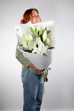 Unit price / perClassic, elegant, and powerfully fragrant, the Lily Market Wrap is the definition of minimalist luxury. Each bouquet is filled with premium lilies sourced fresh from the Brisbane Flower Markets, styled in our crisp white wrap for a timeless finish.